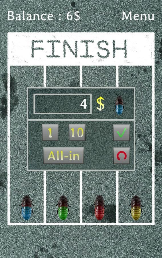 選擇一個或多個蟑螂,下注並嘗試贏得十百個完成比賽。